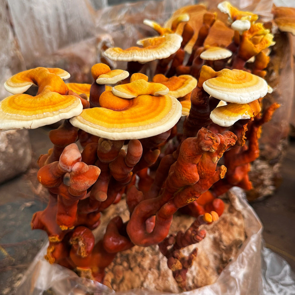 This is a potent mushroom grown for its medicinal use. We offer it in fresh, dried and in powdered extract form for use as a tea or in your own herbal preparations (it is not cooked and eaten as food like our other mushrooms.) It is reported to have anti-inflammatory and antioxidant properties, and may enhance immune response.